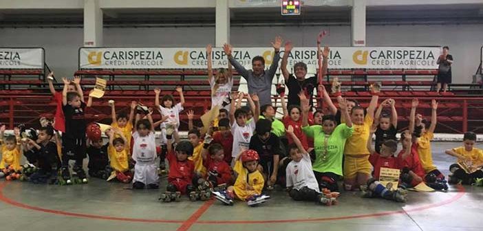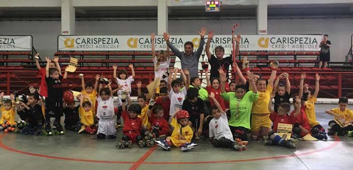 Giornata di chiusura al Centro Polivalente per la scuola hockey del Carispezia Hockey Sarzana diretta dal maestro Tommaso Berretta da sempre responsabile della attività del minihockey della società rossonera coadiuvato dalla maestra di pattinaggio Chantal Noce e dalla coordinatrice Marianna Maccherini. Entusiasta il Presidente del Carispezia Maurizio Corona che dice “L’hockey su pista è uno sport che unisce i benefici del pattinaggio (equilibrio, coordinazione, velocità, forza e resistenza) con quelli tipici di uno sport di squadra (lavoro di gruppo, rispetto per i compagni e per gli avversari, condivisione di obiettivi). Giocato in un ambiente sano come è quello della nostra società, aiuta i bambini a divertirsi e a crescere nel rispetto delle regole e dei migliori valori dello sport. Nella nostra società – continua Corona – rimane il concetto che i problemi del bambino che mette i pattini per la prima volta hanno la stessa valenza dei problemi del giocatore più importante della prima squadra, e questo concetto sino a che io sarò alla guida di questa società dovrà essere sempre al primo punto del nostro credo. Tutto questo meraviglioso patrimonio di ragazzini – conclude Corona – è merito del Maestro Tommaso Berretta nostro storico allenatore del mini-hockey, al quale io non smetterò mai di dire grazie per il lavoro minuzioso che fa con tutti i nuovi bambini che si affacciano per la prima volta al nostro sport. La giornata conclusiva è stata un inno allo sport, più di trenta hockeysti in erba divisi per squadre che si sono dati battaglia in pista, tra le urla dei genitori, ed autentici boati ogni volta che la pallina finiva in rete. Non ci sono stati ne vincitori ne vinti, ma tantissimo divertimento. Dopo la premiazione il buffet offerto dalla società e dalla Pizzeria Bugliani di Viale XXV Aprile a Sarzana. Questi gli atleti della Scuola Hockey del Carispezia Hockey Sarzana 2016-2017: (Under 9) Mattia Andreoni, Vazio Thomas, Antonio Pini, Manuel Ferrari, Mirko Ferrari, Enea Bizzarri, Matteo Zamperini, Thomas Pistelli, Leonardo Xhepa, Nico Guastini, Edoardo Stefanucci, Emanuele Occhione, Gabriele Fusco, Federico Cosenza. (Under 7) Carlo Vanello, Dario Pelaia, Leonardo Stretti, Pietro Bugliani, Giulia Passarini, Giampiero Andreani, Gabriel Buscarino, Gabriele Scatizzi, Tobia Vatteroni, Edoardo Baudinelli, Michele Baudinelli, Ludovico Cargiolli, Tiziano Marchi, Martino Andreoni, Matteo Schiffini, Gabriele Luciani, Luigi Fabbi, Gregorio Tonelli, Jacopo Ribolini, Matteo Merani, Nicola Isoppo, Alessandro Acanfora, Anna Cuomo, Bruno Giangarè, Amalia Giangarè, Daniel Ravenna, Giulio Bertini, Giulio Azzurro.