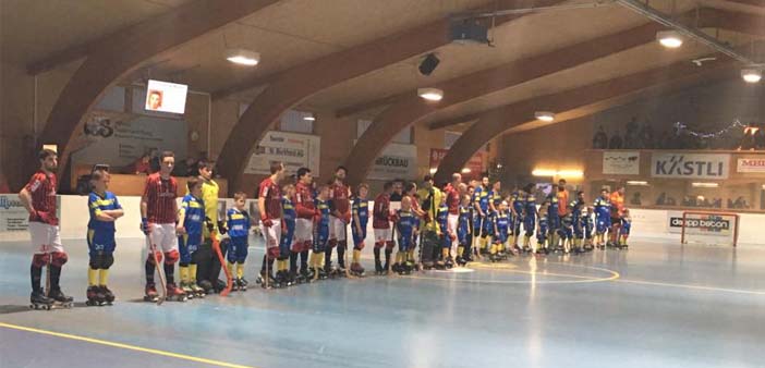 Carispezia Hockey Sarzana nella storia: strappa il pari 3 a 3 in Svizzera nella gara di ritorno di Coppa Cers con l’ Uttigen facendo valere la vittoria per 5 a 3 dell’andata e approda ai quarti di finale. Gli avversari sono partiti forte ma la squadra di Alessandro Cupisti ha reagito alla grande andando in rete con Matteo Pistelli e con una doppietta di Osvaldo Raed. Con il pareggio i rossoneri approdano al turno successivo andando a sfidare lo Sporting Lisbona, una delle squadre più titolate d’Europa gara d’andata sabato 6 febbraio alle ore 21,00 al Vecchio Mercato e ritorno a Lisbona il 5 marzo. (nella foto le squadre a centro pista per gli inni nazionali).