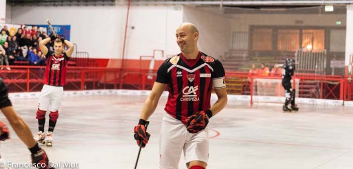 Un grande Carispezia batte il fanalino di coda Sandrigo e brinda all’accesso alla final-eight di Coppa Italia. Il 5-2 di ieri sera combinato con le sconfitte di Correggio e Trissino che precedevano i rossoneri di un punto, significano sorpasso in classifica e conquista dell’ottavo posto, ultimo buono per i play-off, e per partecipare alla Coppa tricolore. Successo firmato da Dolce, De Rinaldis, Sterpini e Festa per un fine d’anno 2016 da incorniciare. Con Corona ancora determinante sui tiri diretti 2 punizioni e 1 rigore parato. Si torna in pista il prossimo 7 gennaio, per la prima di ritorno, in casa contro il Lodi. (nella foto di Francesco Dal Mut il capitano Luca Sterpini autore di una splendida rete).