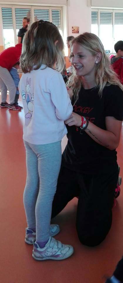 Si vede Erika Ghirardello, con i pattini e la maglietta di allenamento dell’Hockey Breganze fare coraggio a una bambina che vuole provare questo sport. E’ un’immagine bellissima che fa capire cosa vuole veramente la società rossonera: un futuro sempre più avvincente per questa disciplina. Anche per le ragazze.