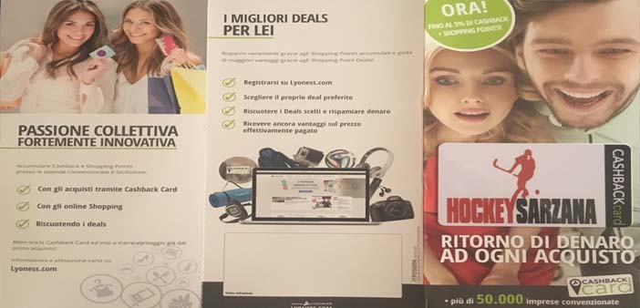 La multinazionale Lyoness è attiva con tre modelli di business: Shopping Community, Programma di Loyalty e Marketing della Segnalazione. La Cashback Card Lyoness è l’unica card, non di pagamento, presente in 47 mercati ed in 5 continenti. Quasi 6.000.000 di persone usufruiscono dei vantaggi erogati da oltre 50.000 aziende convenzionate presso oltre 300.000 punti di accettazione. In Italia le piccole e medie imprese convenzionate sono oltre 8000 che possono distribuire carte con il proprio logo fidelizzando i clienti. La full-branded Card Lyoness, personalizzata Hockey Sarzana, con l’immagine del logo, verrà distribuita in maniera selettiva ai soci e ai tifosi che desidereranno aderire a Lyoness e potranno così, con i loro acquisti quotidiani, registrati presso le imprese convenzionate Lyoness ottenere vantaggi in cashback e sostenere l’ Hockey Sarzana.
