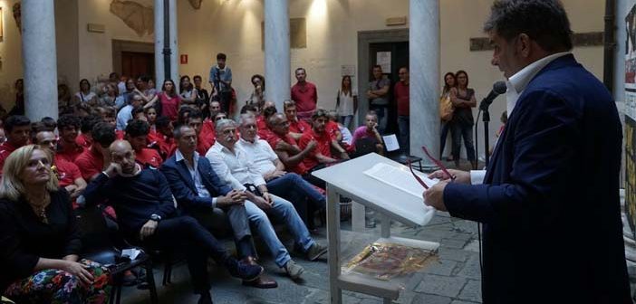 Domenica 20 settembre nella splendida cornice del Palazzo Comunale di Sarzana è stata presentata la squadra di serie A1 insieme a tutti gli atleti del settore giovanile del Carispezia Hockey Sarzana, compresa la sezione del Pattinaggio Artistico e con loro tutto lo staff tecnico e dirigenziale, alla presenza di un pubblico numerosissimo. Ad aprire la cerimonia Alessandro Grasso Peroni, giornalista del Secolo XIX nonché la voce del Carispezia Hockey Sarzana nelle telecronache e negli highlights della formazione rossonera. La presentazione è iniziata con la proiezione del video di Gaetano De Benedetto che sulle note della famosa canzone di Luciano Ligabue ha presentato i protagonisti della stagione che avrà inizio sabato 2 ottobre. Al termine ha dato la parola al presidente Maurizio Corona che, arrembante come sempre ma anche visibilmente emozionato, ha voluto iniziare il suo intervento partendo dallo slogan che ha caratterizzato la campagna abbonamenti per poi sottolineare l’importanza di essere nel palazzo comunale a presentare la squadra e la stagione. “Abbiamo rimesso la chiesa al centro del villaggio” citando Rudi Garcia che ha usato questo detto francese dopo la vittoria di un derby romano che significa e si usa per spiegare come le cose si siano messe a posto e nella loro giusta proporzione. Portare l’hockey nel palazzo comunale è un po’ come rimettere la chiesa al centro del villaggio. Ecco perché abbiamo scelto il Palazzo Comunale invece che il Centro Polivalente, la risposta riprende un altro slogan,, quello di tre anni orsono, quando ci siamo definiti l’ orgoglio della città ed io questo luogo lo considero il simbolo, il fulcro politico e l’orgoglio architettonico e culturale di questa città. Riprendendo lo slogan che abbiamo usato per dare inizio alla campagna abbonamenti della stagione 2013-2014. “Siamo in pista dal 1946”, quando abbiamo voluto rendere merito ed onore e dare risalto alla storicità della nostra disciplina nella nostra città. Per ricordare quella data in cui sette amici Tori, Haver,Bonatti, Trafiletti,Pino Ferrari, Garibaldi e Tonarelli decisero di dare una configurazione societaria alla passione verso uno sport che già praticavano. Il 15 Settembre 1946 essi fondarono l’ Associazione Pattinatori Sarzanesi. Il prossimo anno sarà caratterizzato dal settantennale e vogliamo essere pronti per quella data, insieme al sindaco e insieme al Consorzio dei Commercianti Sarzanesi vogliamo portare il torneo estivo di hockey in Piazza Garibaldi in mezzo alla gente con dieci serate di hockey nel cuore della città. Sarebbe stato bello riportarlo in Piazza della Stazione dove i nostri avi giocarono le loro prime partite. Nella prima serata del torneo uscirà un libro che racconterà i settant’anni di hockey a Sarzana il cui incasso sarà dato in beneficenza alla Pubblica Assistenza di Sarzana. In tutti questi anni il nome di Sarzana ha viaggiato per l’ Italia e in Europa e il 24 Ottobre prossimo a Sarzana arriveranno i tedeschi del Dusseldorf, per la quarta partecipazione in Coppa Cers dell’Hockey Sarzana, e sentire gli inni nazionali suonare al Centro Polivalente con i nostri ragazzi abbracciati come la foto del nostro abbonamento è una grandissima emozione. Da anni abbiamo voluto caratterizzare le tute della serie A1 con la grande scritta SARZANA, tute che riportano sia lo stemma della Città di Sarzana, e della provincia della SPEZIA e presto spero anche della regione LIGURIA, perché quando noi viaggiamo per l’Italia da Bari a Bassano del Grappa e arriviamo nelle città e vediamo i manifesti che propagandano la partita della sera e vediamo il nome di Sarzana, io personalmente mi sento orgoglioso,ma si sentono orgogliosi tutti i miei dirigenti si sentono orgogliosi i nostri atleti che per buona parte sono sarzanesi. Quando andiamo in diretta RAI, almeno tre volte in anno, e appare in sovraimpressione il nome della città affiancato al nome del nostro main-sponsor penso che rendiamo un grande servizio a questa città. Ed è per questo che questa città deve renderci il merito di quello che facciamo.” Anche quest’anno, così come fece lo scorso anno, la determinazione della società di raggiungere anche in questa stagione la salvezza in A1. Poi il Presidente ha parlato della stagione a venire, e rivolgendosi alla folta platea e alle autorità con tono perentorio ha ribadito “E io ancora mi ripeto sono obiettivi che possono sembrare minori ed invece sono di vitale importanza nella vita di una società: una salvezza può valere uno scudetto? A volte vale molto di più, se questa salvezza è il frutto di un lavoro di anni e di una programmazione volti al futuro dell’hockey a Sarzana e quindi non un’impresa “mordi e fuggi” senza gettare le fondamenta per il domani, un domani che porta ancora il nome anche di Carispezia, il nostro partner principale. La scelta di cinque anni fa di Carispezia di abbracciare la nostra disciplina ha rappresentato la realizzazione di un sogno che ha reso merito ad uno sport che, per Sarzana, non è certamente minore. Anche per questo noi non possiamo fallire la salvezza neppure quest’anno, in questa difficile stagione di serie A1, per far si che questo binomio possa regalare agli sportivi sarzanesi, ma non solo, nuove soddisfazioni e grandi emozioni. Perciò voglio richiamare ad un senso di responsabilità tutta la squadra che deve rendersi conto quanto la permanenza in serie A1 sia fondamentale per tutto il movimento.” Poi parlando della rosa della squadra ha continuato “Abbiamo costruito una squadra che può raggiungere questo traguardo nonostante le difficoltà e la crisi che sta attanagliando molte aziende e molti nostri partner tradizionali che ci hanno costretti a una riduzione notevole del budget, non per niente abbiamo chiesto aiuto ai nostri tifosi, vogliamo coinvolgerli come hanno fatto in altre realtà ,certo il traguardo della salvezza non è una facile meta da conquistare, va fa