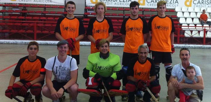 Partita “simpatia” quella giocata tra Pizzeria il Borgo e Master 2014, troppo il divario di età e tecnico tra le due formazioni. Primo tempo che si chiude con il risultato di 4 a 0 con le reti di Baldesi, Noce, Ungari e Pauletta. Nel secondo tempo ancora “show” dei ragazzi terribili dell’ Hockey Sarzana guidati da Fabrizio Bassani che vanno ancora a segno per quattro volte grazie a una doppietta del loro over Carlos Sturla e alle reti di Baldesi e Pauletta. Due reti anche per i cinquantenni sarzanesi, ognuna delle quali viene sottolineata da un boato degli spettatori presenti il bomber è Paolo Tronfi che con la sua doppietta rende meno amaro il punteggio fissandolo sull’ 8 a 2. Comunque ancora una bellissima prova dei Master 2014 che escono tra gli applausi di tutto il Polivalente.